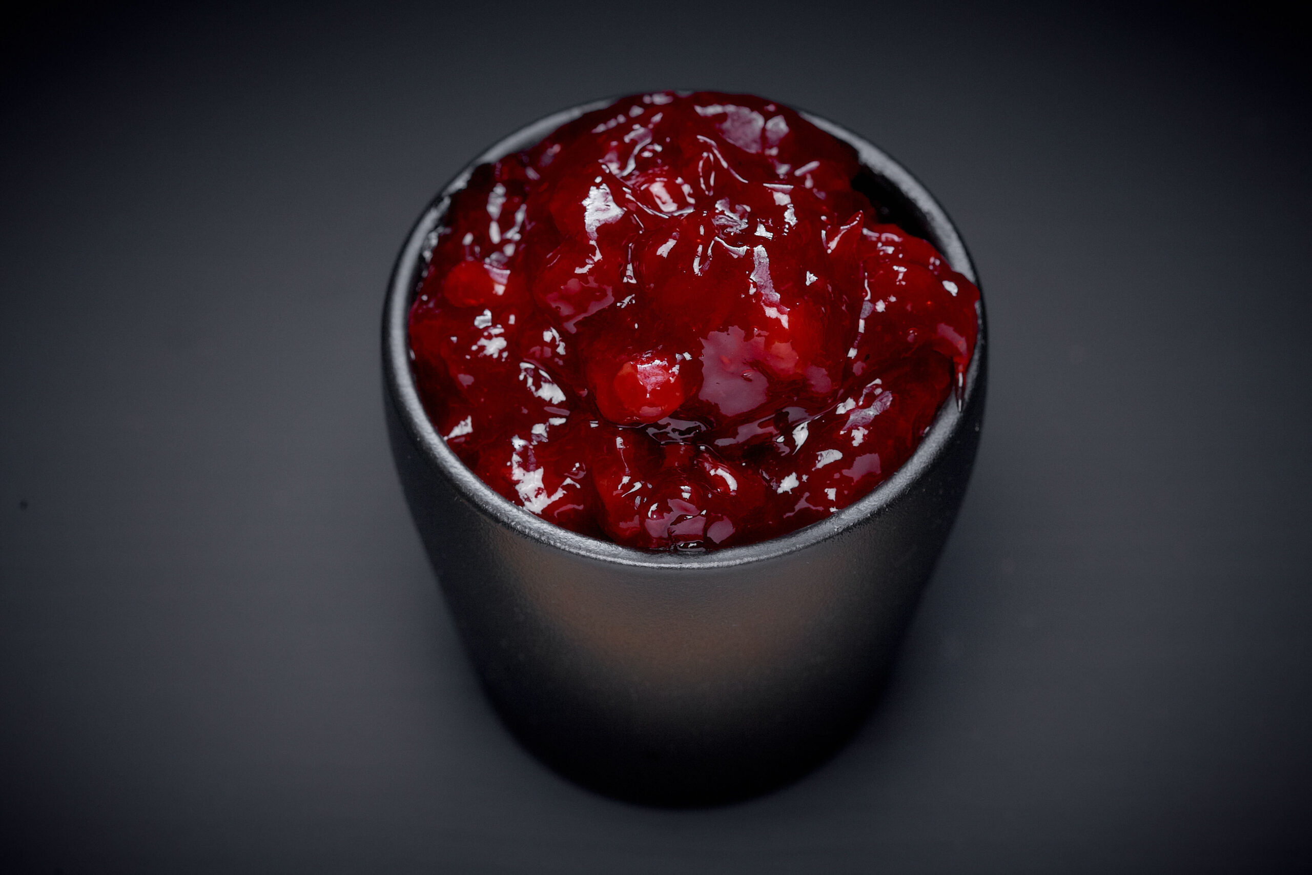 Składniki(%): 50% żurawina; cukier; woda; skrobia modyfikowana kukurydziana; substancja wiążąca: mleczan wapnia, cytryniany wapnia; regulatory kwasowości: kwas cytrynowy, cytryniany sodu; owocowo-/roślinne koncentraty (standaryzacja barwy): koncentrat z marchwi; koncentrat z marchwi, koncentrat z marchwi, aronii i winogron; substancja konserwująca: sorbinian potasu; substancja zagęszczająca: guma gellan.